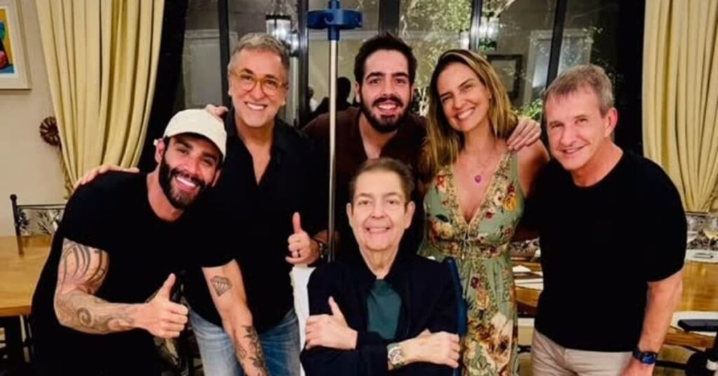 Na noite da última quarta-feira (26), o apresentador Fausto Silva, mais conhecido como Faustão, de 74 anos, reuniu a família para um jantar especial em sua residência. O evento contou com a presença do cantor sertanejo Gusttavo Lima, além de amigos próximos e empresários do meio artístico. A noite foi regada a pizza e vinho, celebrando momentos de descontração e amizade.
